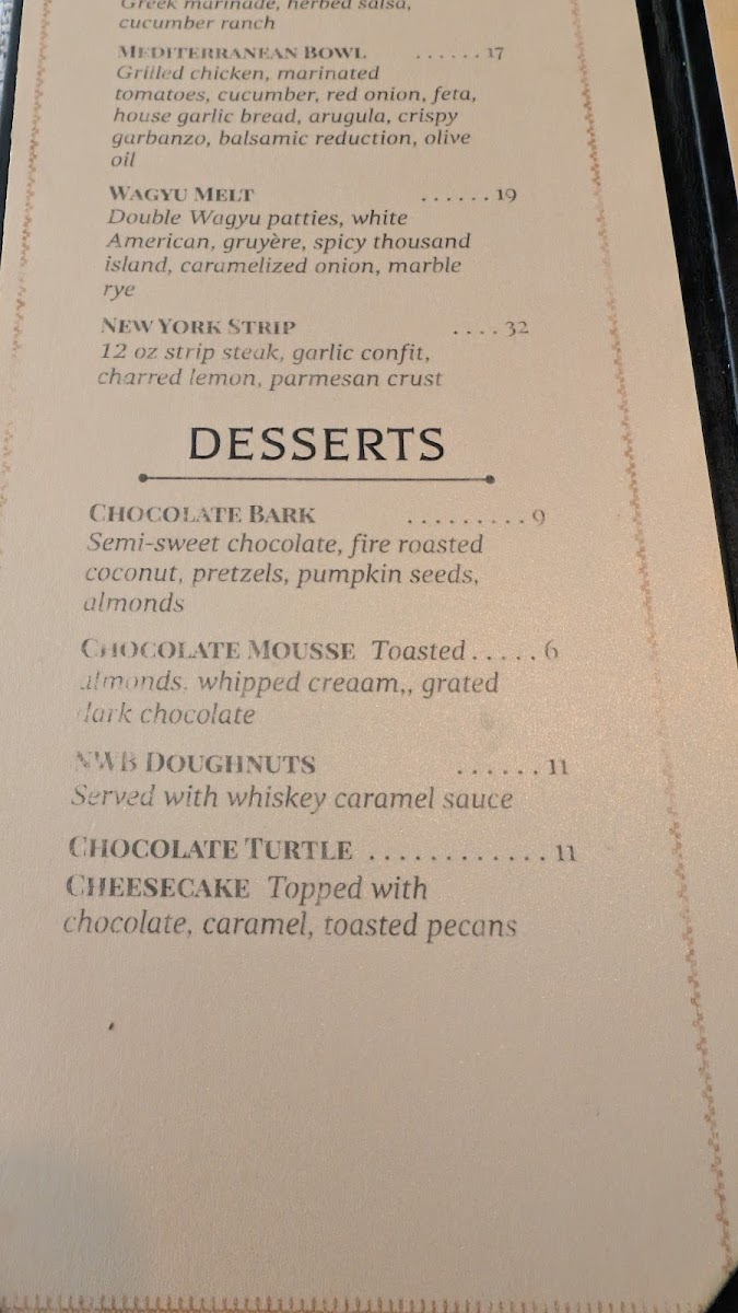 Sides such as crispy Brussels sprouts or cauliflower gratin add depth to the meal without overwhelming, while desserts like cheesecake with blueberries and rich mousse provide a gentle close to the experience. The menu reflects a thoughtful layering of flavors that encourage savoring moments in good company, whether during a lively social hour or a quiet dinner.