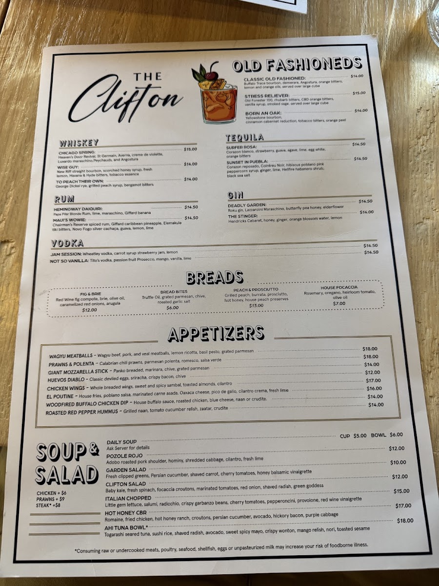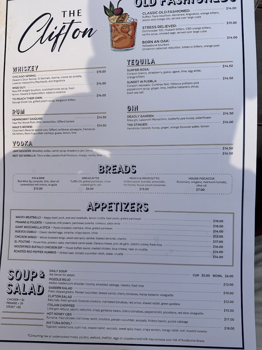 The Clifton offers a thoughtfully curated menu that strikes a balance between comforting favorites and inventive dishes, perfect for unwinding any day of the week. Whether you're stopping by for casual bites or sitting down to a full meal, the selection feels approachable and satisfying, with options that transition smoothly from a relaxed lunch to an evening out.